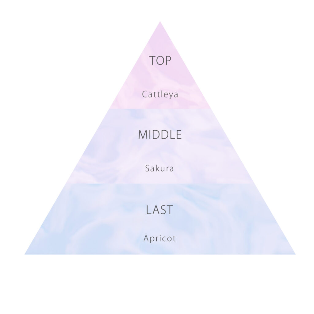 カトレアの花ひらく美しい香りをベースに、満開の桜の香りが霧のようにふんわり包みます。