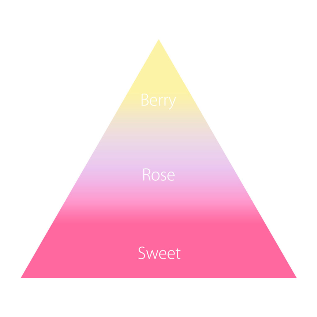 甘酸っぱいベリーと、ふんわり広がるローズの香りをスウィートで包んだ、スウィートフルーティーフローラルのキュンとする香りを、ぜひお試しください。