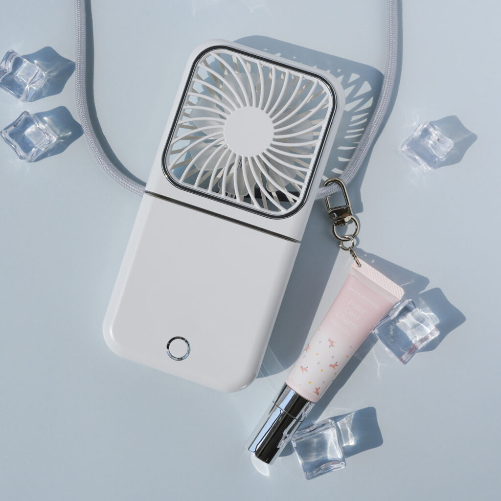 キーホルダー型だからお手持ちのハンディファンにつけて外出時に持ち歩ける。