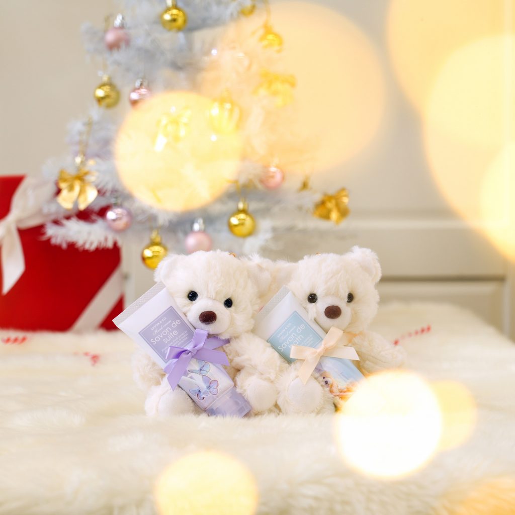 寒い冬にぴったりのもこもこベア、保湿に欠かせないハンドクリーム。どちらも心踊るホリデーシーズンの外出に持ち歩いて欲しい。香りは2種類。
