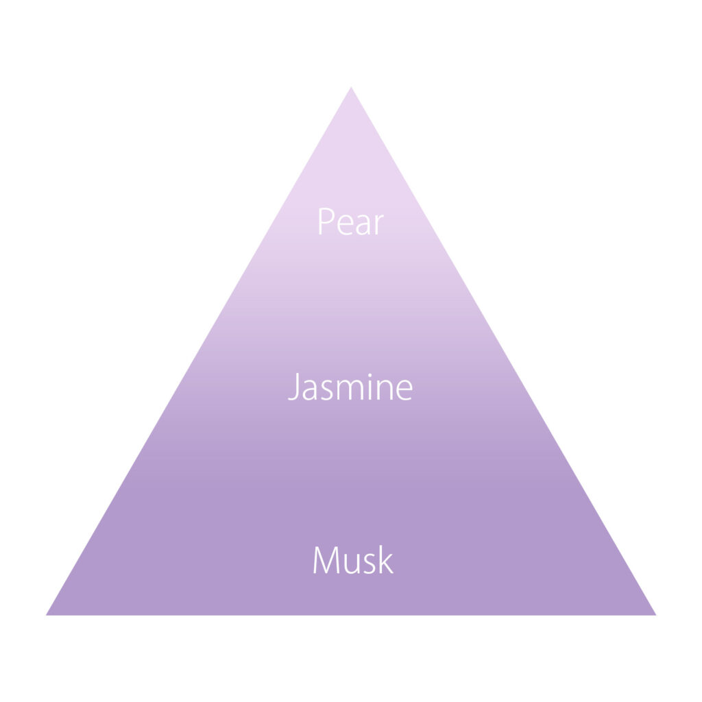 ジャスミンとペアーの瑞々しく甘美な香りにミュゲの透明感のある上品な香りが重なる、フローラルフルーティーの香り。